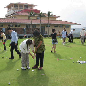 由於這七十位貴賓幾乎都是初次到高爾夫球場,因此下午兩點到四點,球場讓他們在練習果嶺上,免費體驗推桿,還有教練及桿弟指導,每位貴賓都非常興奮。部份怕曬沒體驗推桿的貴賓,也在會館的DISCO區歡唱。