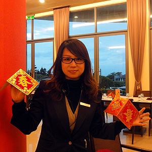 「曾先生您好,您今天是否也要點素食餐點呢?」面帶笑容,親切地為客人點餐,全國花園鄉村俱樂部西餐廳主任張佳惠,讓人印象深刻,她用心記下每個客人的特殊需求,讓顧客賓至如歸,充分發揮了服務業以人為本的精神。