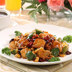 川菜豐富的口感,有「七滋八味」之說,其風味則是清、鮮、醇、濃並重,並以麻辣著稱。四季廳這次主打的招牌菜色『宮保雞丁』,以去骨雞塊過熱油後,與乾辣椒及花生米拌炒,乾辣椒的特徵就是辣,除了具備香料用外,也可以刺激腸胃、幫助消化、在炎熱的夏天裡增進食慾。