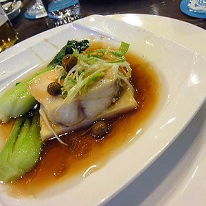 第三道開胃菜【蔥油龍雪魚】,入口即化的龍雪魚,舖在香嫩的豆腐上,淋上蔥油醬,搭配青江菜,幸福滿分。第四道湯品【南瓜鮮濃湯】,香純濃郁,濃湯中有蝦仁、蟹肉等海鮮食材,料多實在又美味可口。第五道前菜【香煎玉帶子】以洋蔥、柴魚片、黑豆、鮮嫩蘆筍等舖底,香煎干貝放置其上,以蝦卵點綴,精緻味美。