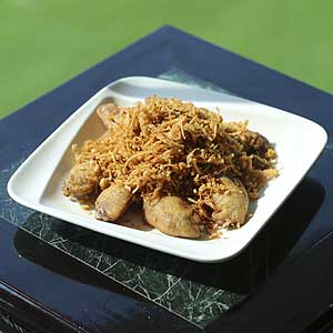 步驟七:椒鹽金針菇撒上雞中翅盛盤。